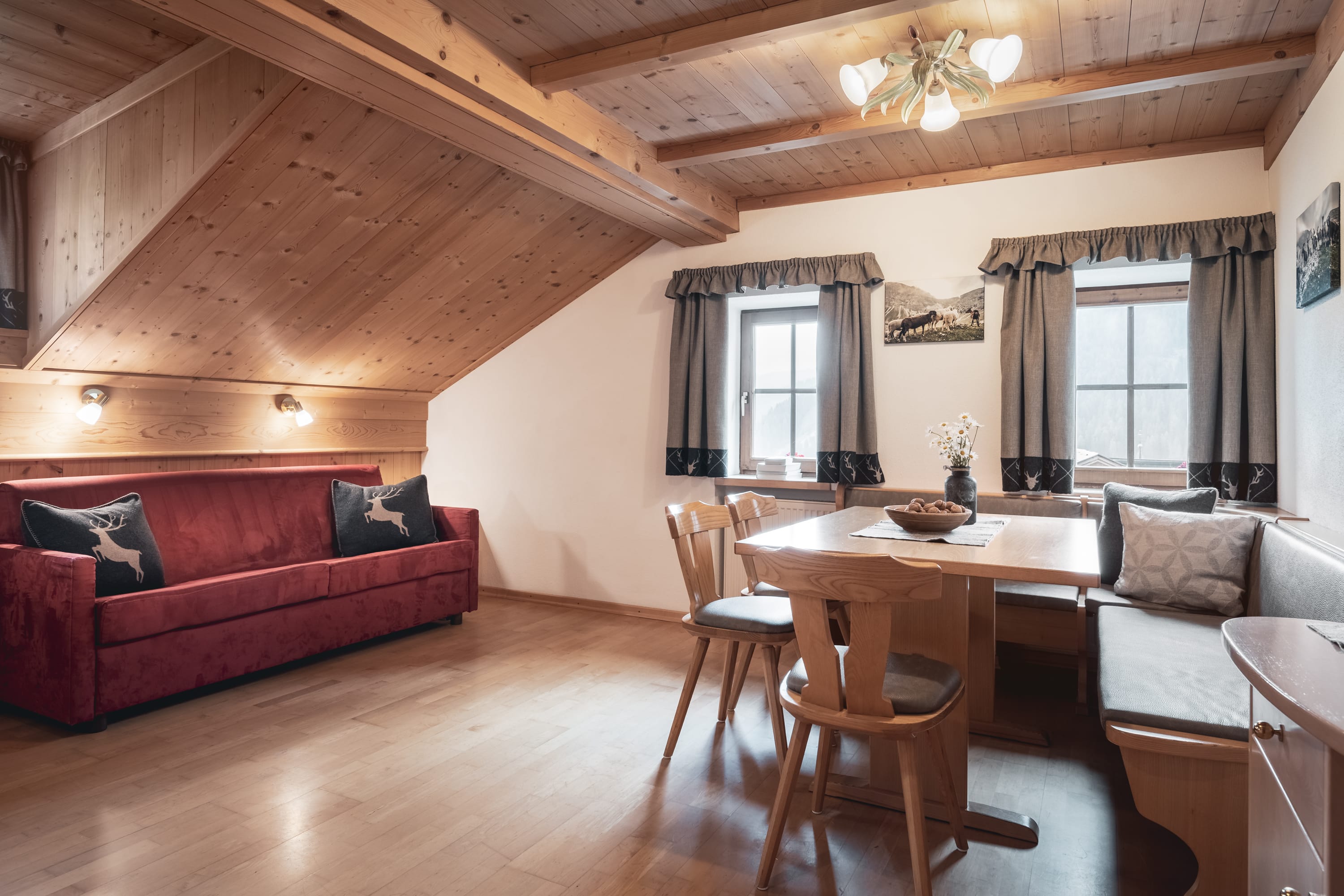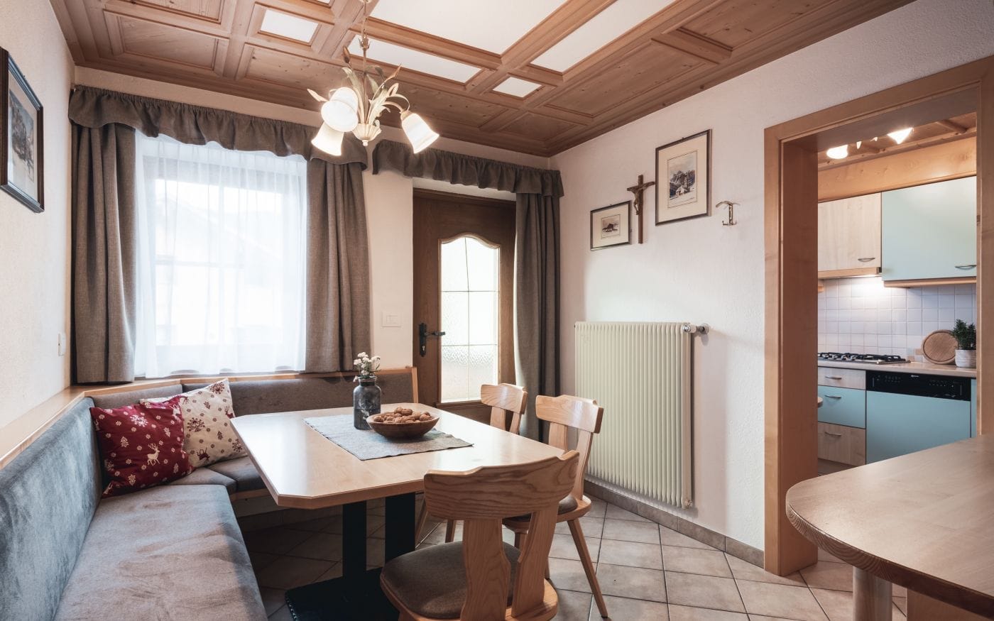 The apartments in Ciasa Altonn take up the traditional alpine architecture. The apartment's furnishings are tradition-conscious yet comfortable, and incorporated harmoniously into the wood-paneled rooms. The pastel details and the bright rooms impart freshness to the space, and the comfort and practicality of the furniture makes you feel right at home.