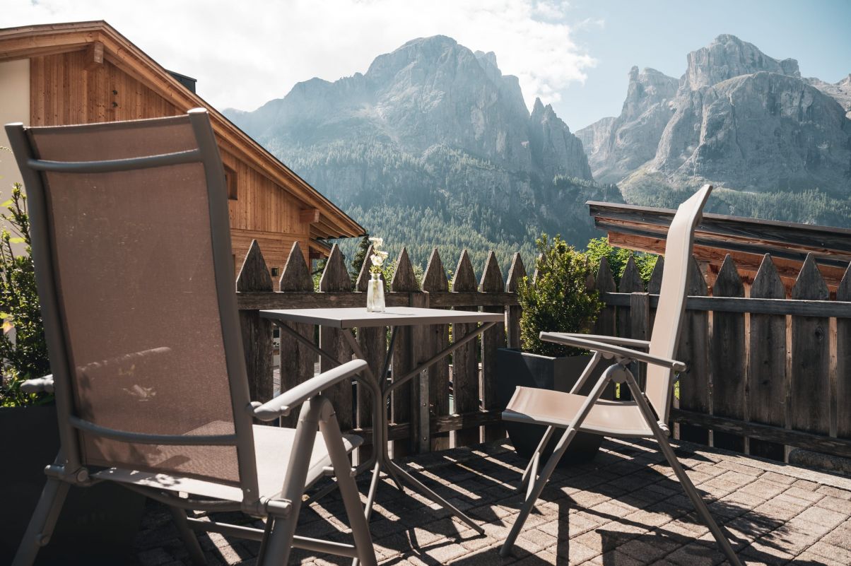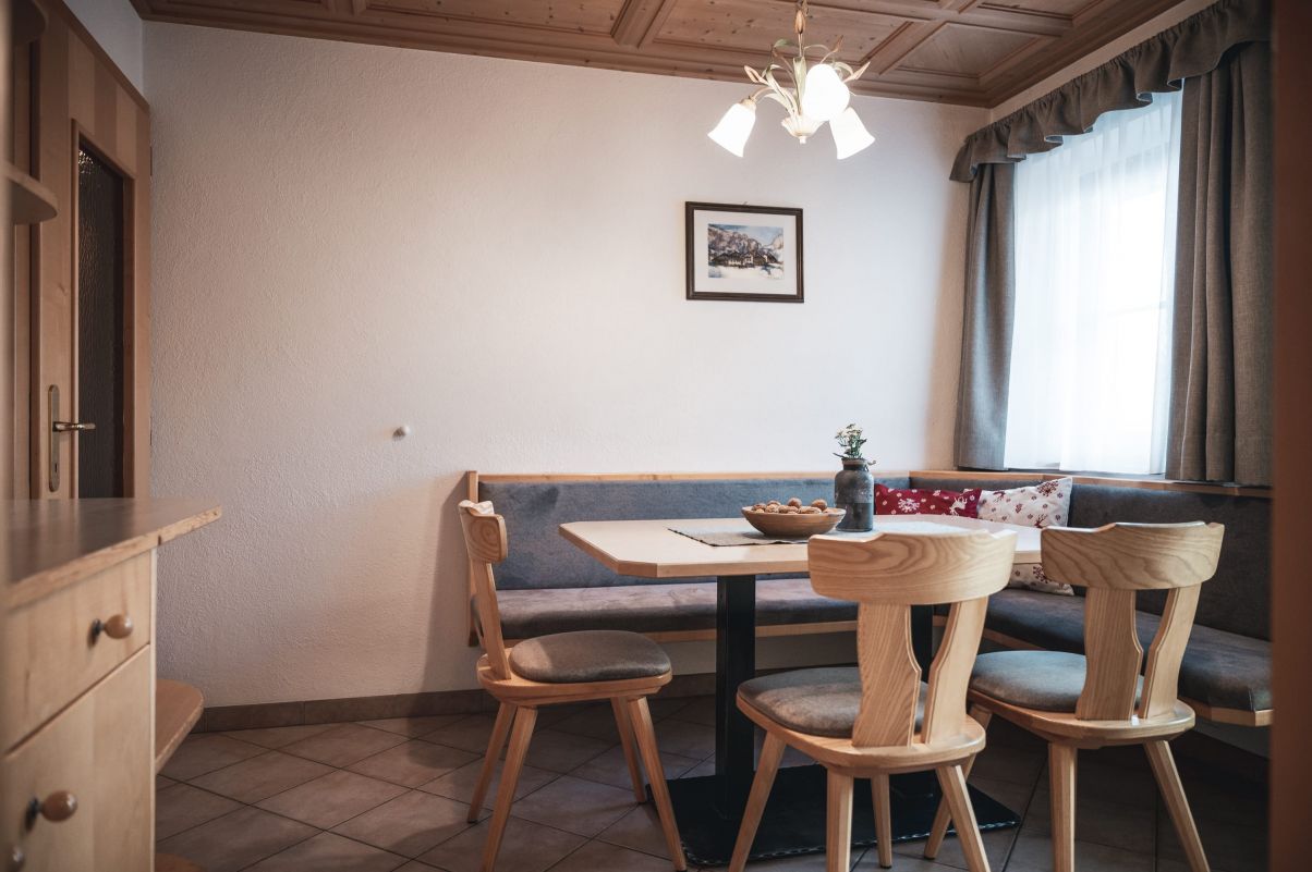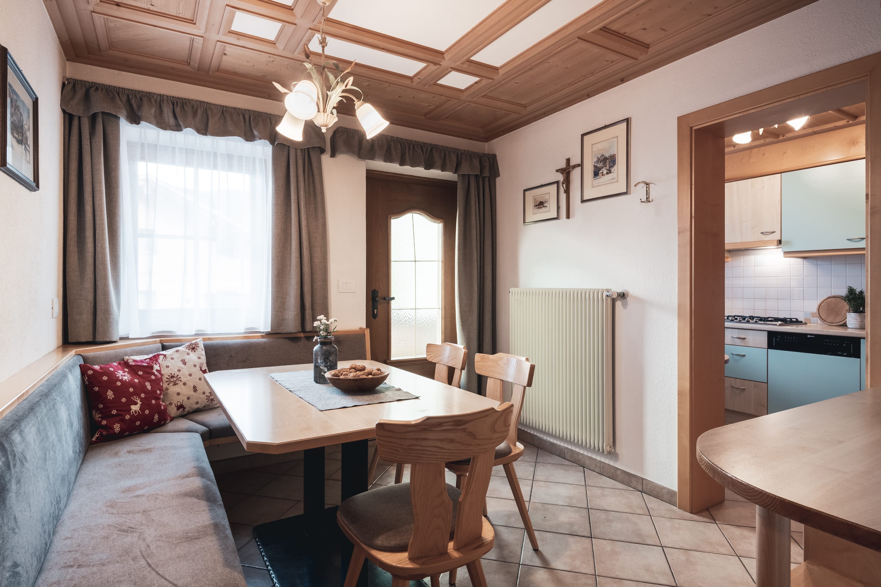 The kitchen is fully-equipped with gas stove, fridge and freezer, dishwasher with tabs, microwave oven, electric kettle and filter coffee machine. The apartment has a separate entrance that leads to the terrace, form where you can enjoy a panoramic view of the Sella group.