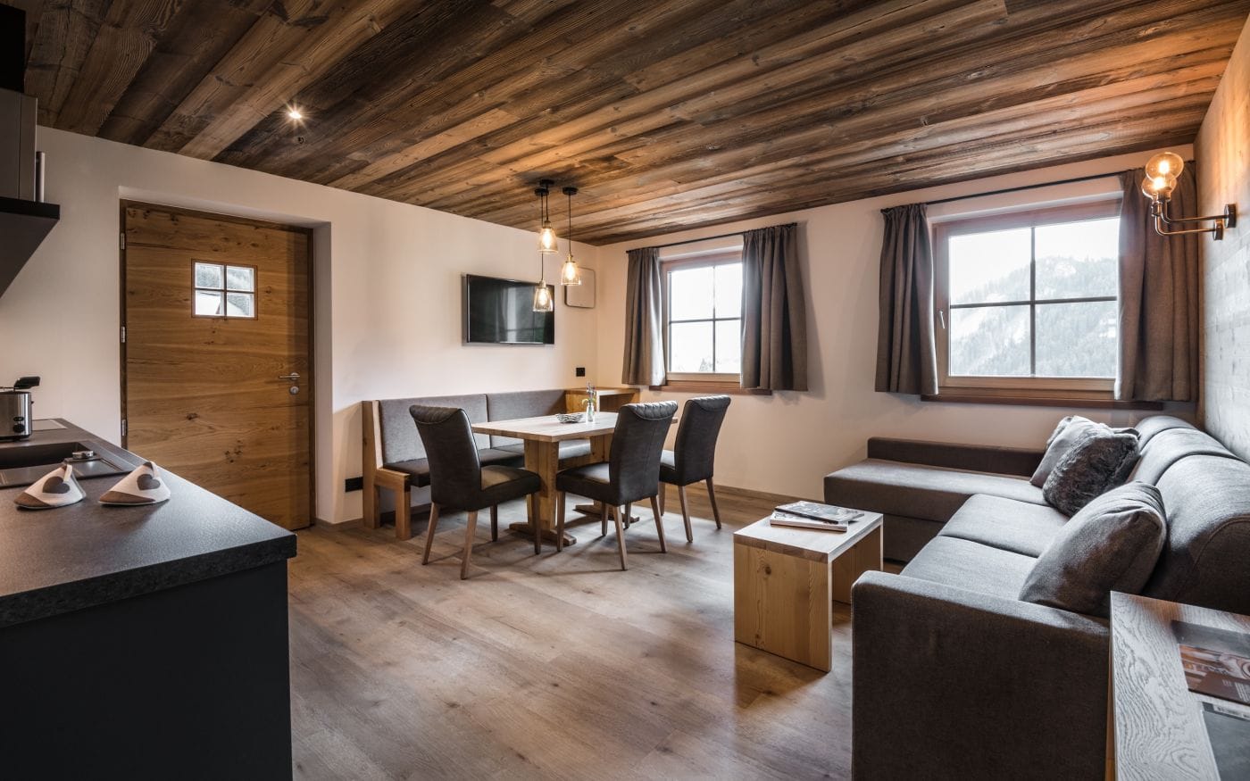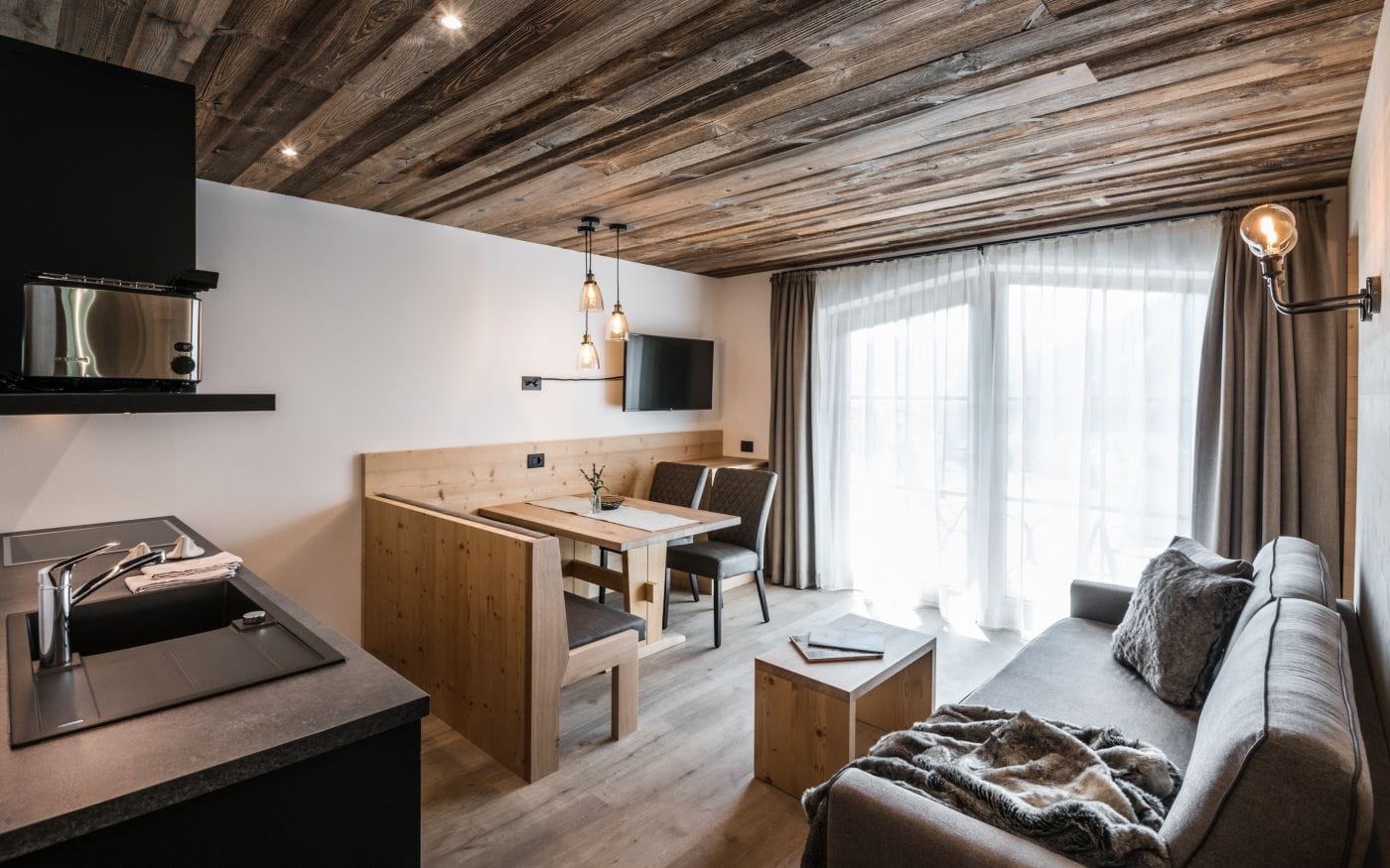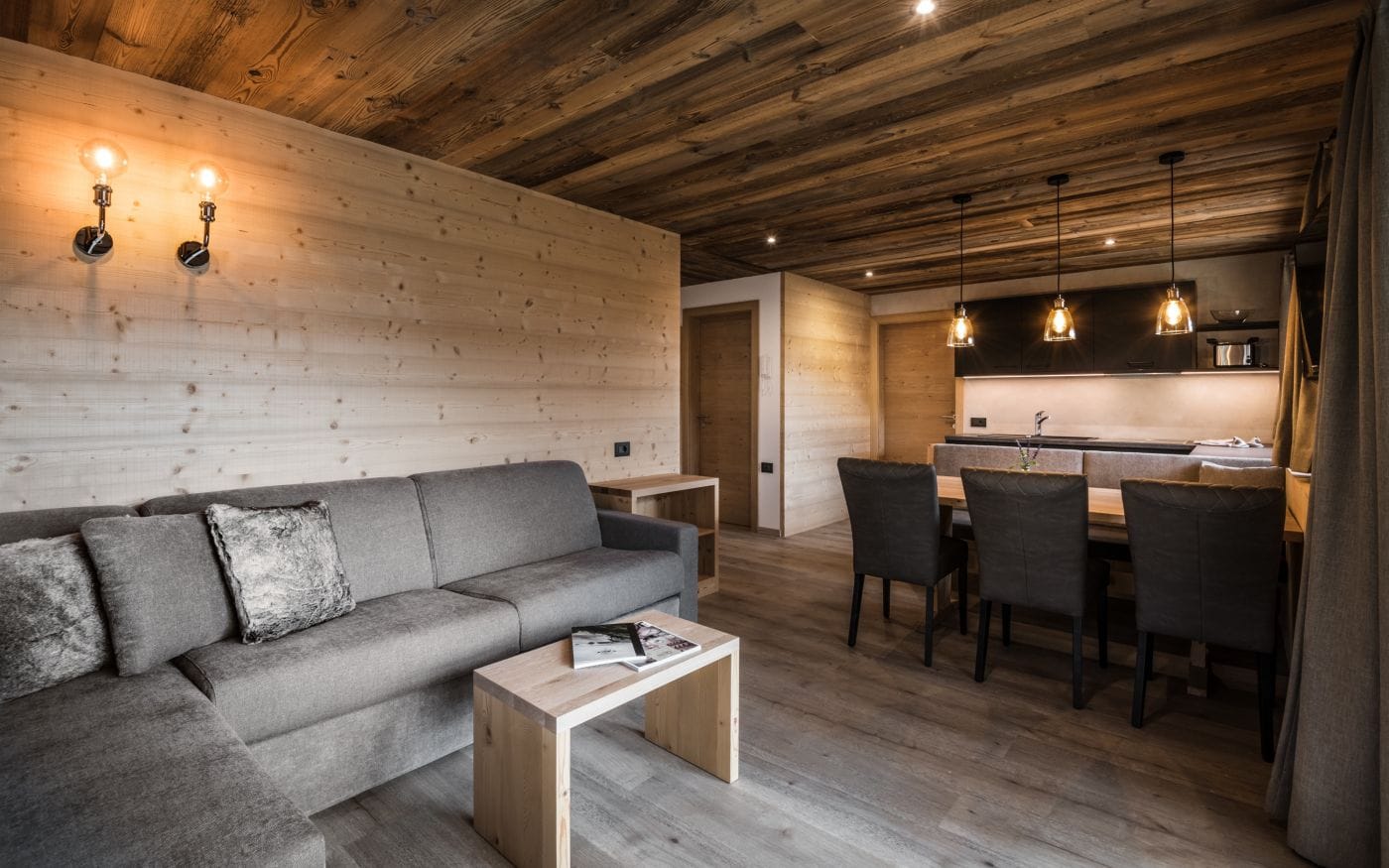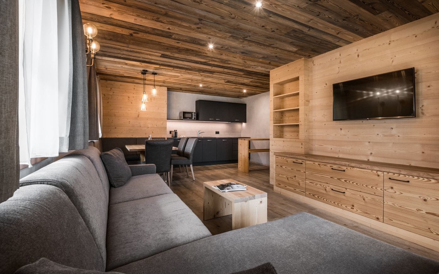 The apartments in Vila Altonn in Colfosco recall on one side the traditional Alpine architecture, by making wood the most used material in the furnishings.