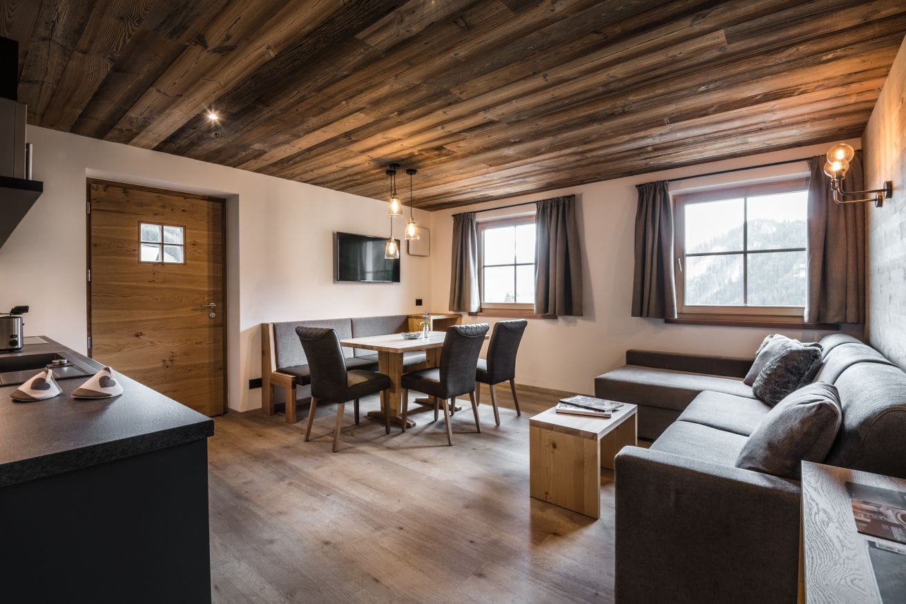 All floors are heated, and in the living room with TV/Sat the sofa can be turned into a double bed. The kitchen is fully-equipped with electric stove, fridge and freezer, dishwasher with tabs, microwave oven, electric kettle, filter coffee machine or coffee capsule machine. From the wide south-facing glass window, you get a charming view of the Sella group and of the towns of Colfosco and Corvara.