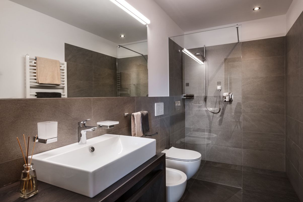 The apartment on the first floor features two double bedrooms with divisible beds, each with separate bathrooms furnished with shower, towel warmer, washbasin, hairdryer, WC and bidet.